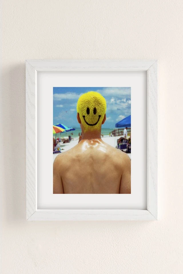Art print from Acute Perception featuring a photograph of a happy face painted onto a shaved head. Printed on archival paper made from cotton pressed in Italian mills, this high-quality art print is available in sizes and frames just right for your space. First select your frame (or go frameless), then select your size.