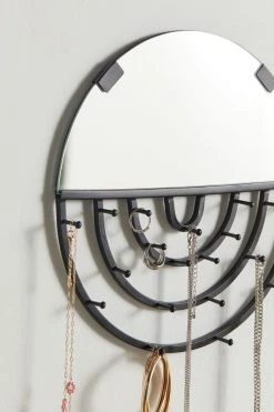 2-in-1 mirror + jewelry storage, made from metal and glass for a chic addition to any space. Complete with a mirror and over 10 hooks for hanging necklaces, bracelets, earrings + more. Hardware not included. UO Exclusive.