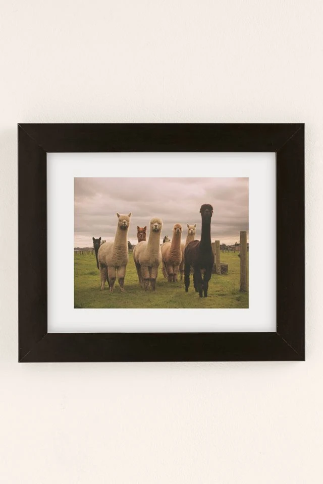 UO-exclusive art print featuring a staredown with alpacas, photographed by Alisha KP. Printed on archival paper made from cotton pressed in Italian mills, this high-quality art print is available in sizes and frames just right for your space. First select your frame (or go frameless), then select your size.