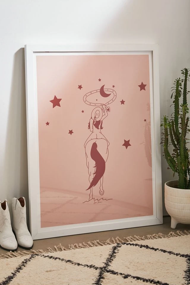 Lasso the moon in your birthday suit with this retro-Western-inspired art print by Allie Falcon. Printed on archival paper made from cotton pressed in Italian mills, this high-quality art print is available in sizes and frames just right for your space. First select your frame (or go frameless), then select your size.
