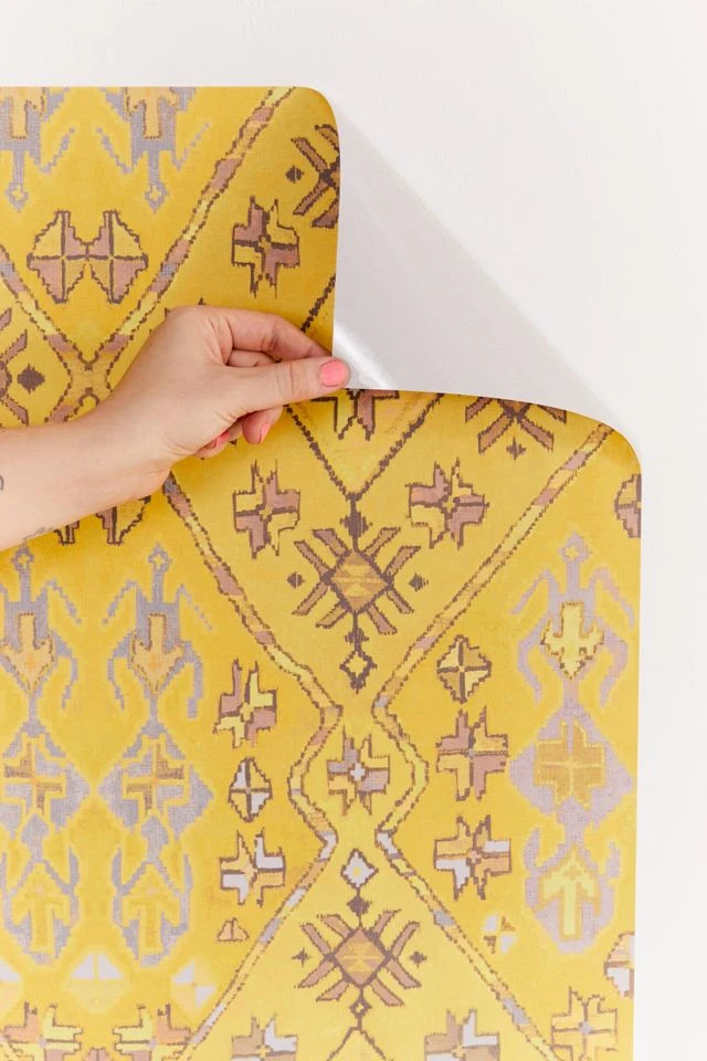 Easily removable stick-on wallpaper in a bohemian geometric design inspired by vintage rugs, available exclusively through UO. Cut in panels you can use to accent one wall or tile all over your room. Comes with one strip of wallpaper in an allover repeating pattern – choose from three different sizes to best suit your space.