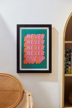 Art print by ayeyokp featuring a motivational quote in retro-style block lettering. Printed on archival paper made from cotton pressed in Italian mills, this high-quality art print is available in sizes and frames just right for your space. First select your frame (or go frameless), then select your size.