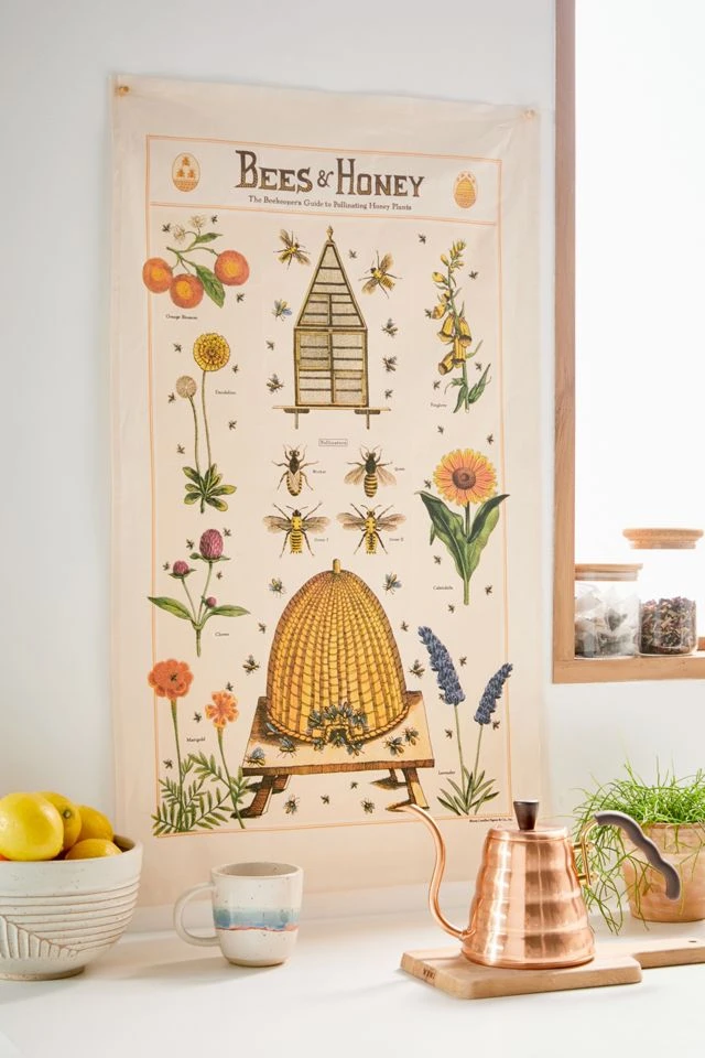 For your busy, blooming space, this bee-themed flag tapestry is just the thing. Decorated with bees, hives and blooms printed all over.