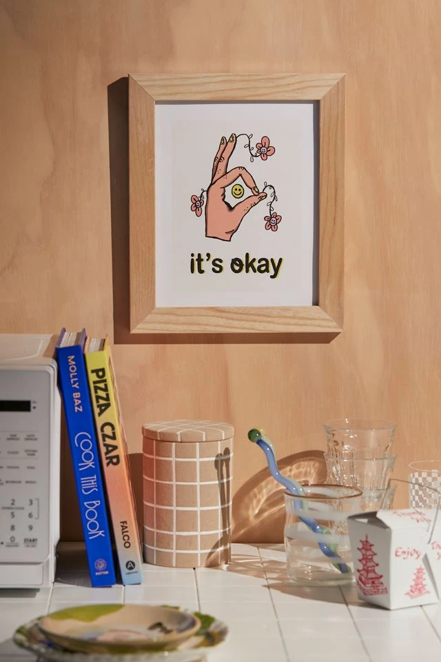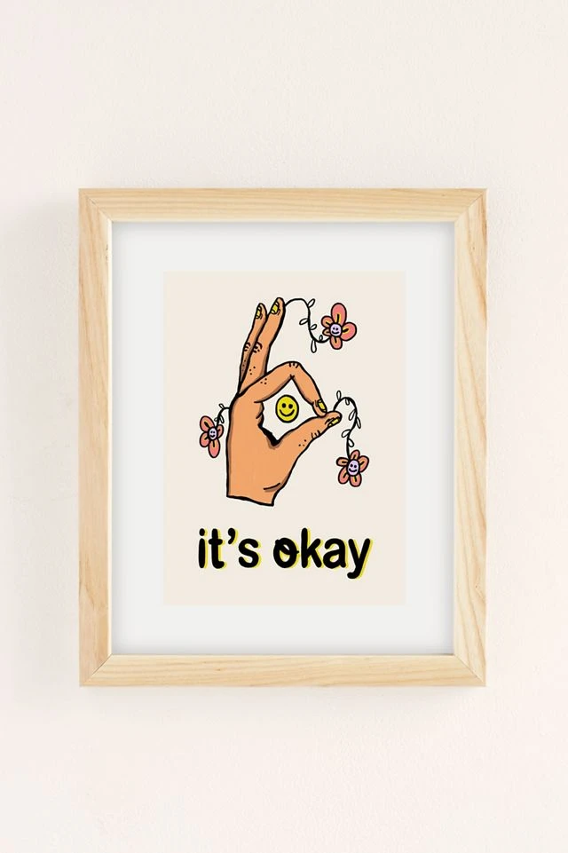 Art print by Camila Trapasso featuring a reminder that everything is okay. Printed on archival paper made from cotton pressed in Italian mills, this high-quality art print is available in sizes and frames just right for your space. First select your frame (or go frameless), then select your size.