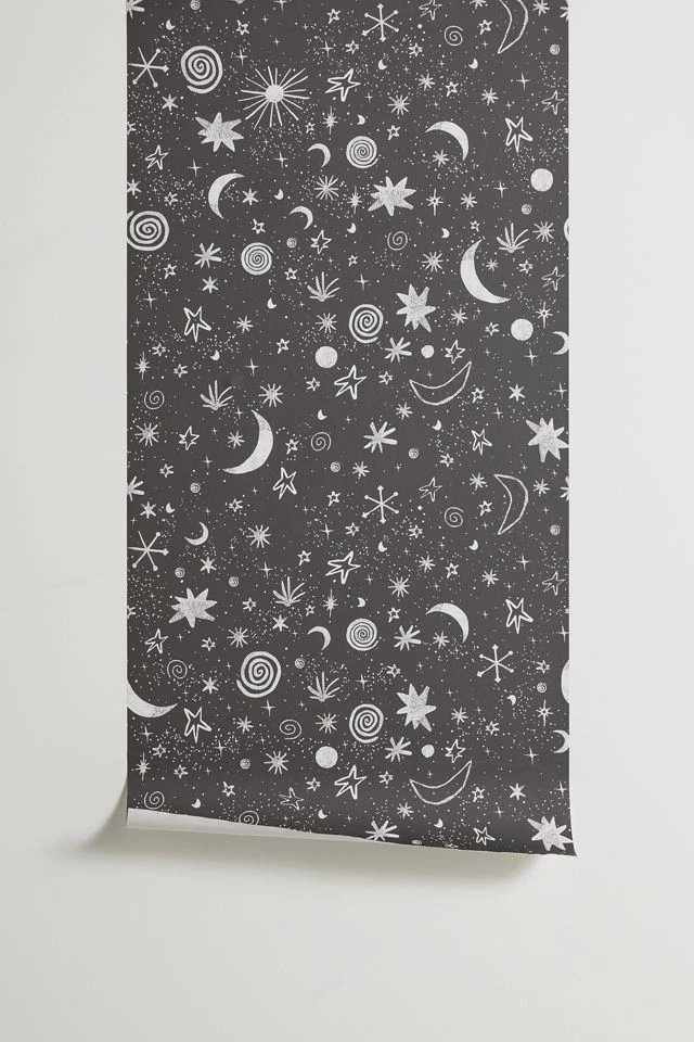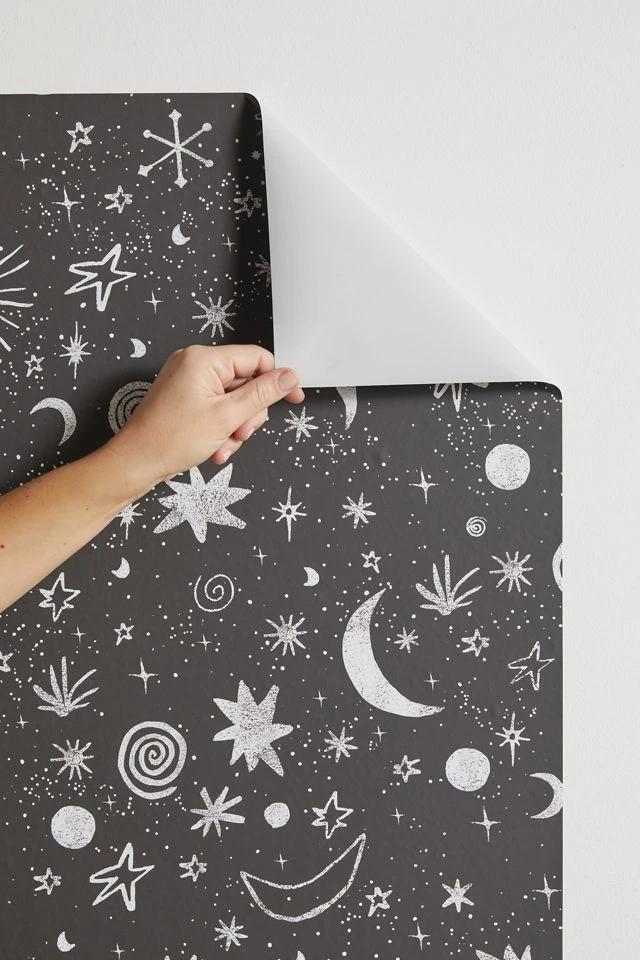 Easily removable stick-on wallpaper. Cut in panels you can use to accent one wall or tile all over your room, in a matte finish with vibrant, water-based, non-toxic inks. Comes with one strip of wallpaper in an allover repeating pattern – choose from three different sizes to best suit your space.