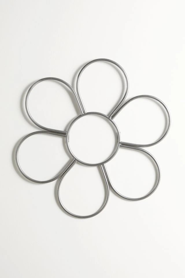 Infuse your space with flower power when you display this daisy-shaped wall hanging rendered in an extra-large silhouette. Crafted from curving, tubular metal with a silver finish that lends a modern feel to your wall space. Available exclusively at Urban Outfitters.