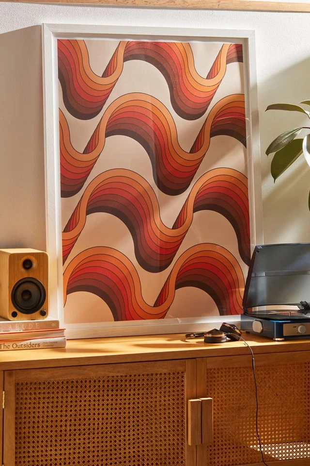 ‘70s-inspired graphic art print by Circa 78 Designs featuring an orange and red gradient in a curving ribbon pattern. Printed on archival paper made from cotton pressed in Italian mills, this high-quality art print is available in sizes and frames just right for your space. First select your frame (or go frameless), then select your size.