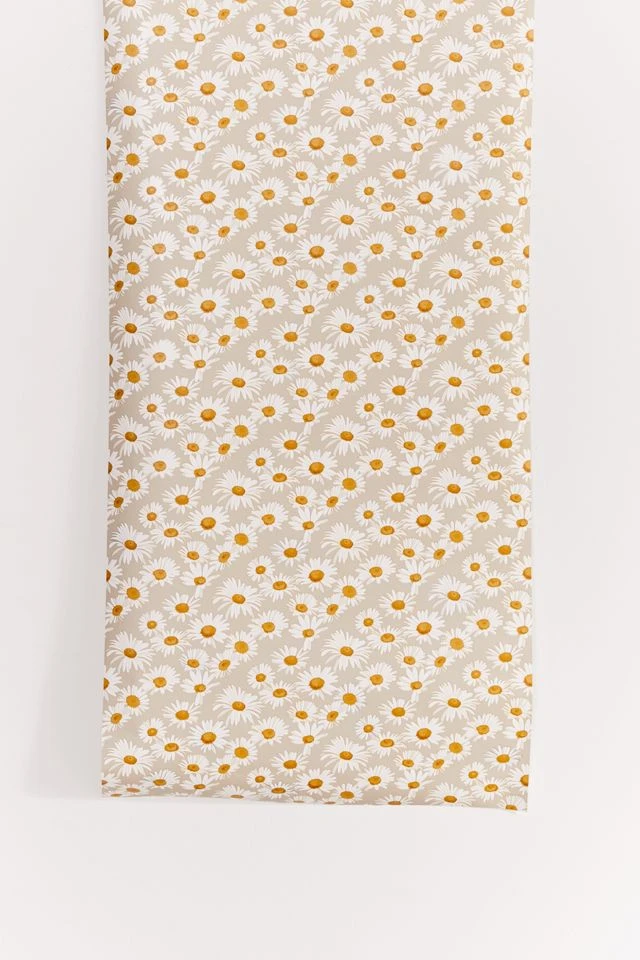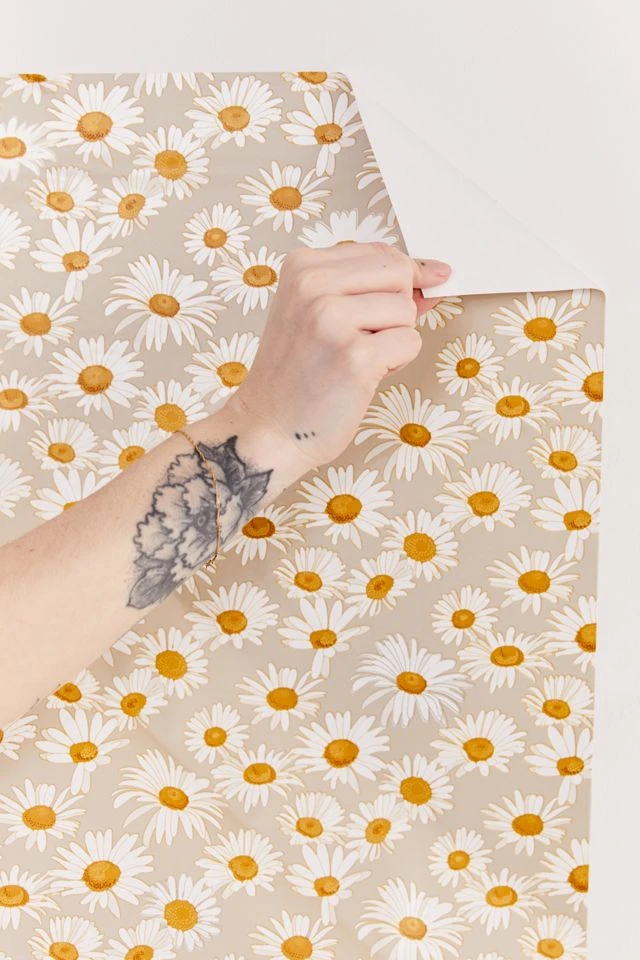 Flower power vibes with this removable adhesive wallpaper. Cut in a roll you can use to accent one wall or tile all over your room. Self-adhesive, vinyl-coated design can be repositioned to lie at the perfect angle and features repeating design every 20.5” in a 28 sq ft roll.