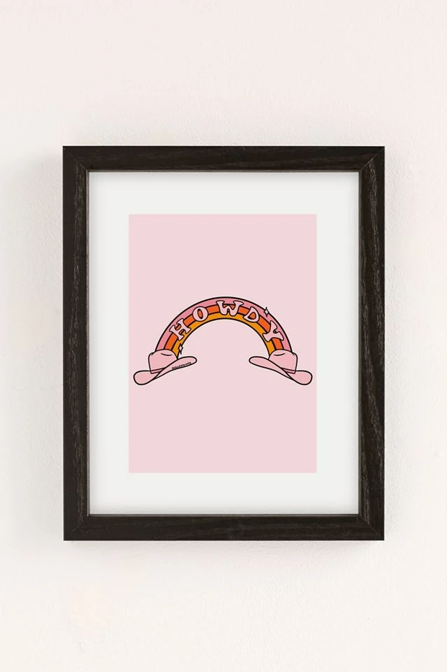 Art print by Doodle By Meg featuring western cowboy hats & a welcoming rainbow. Printed on archival paper made from cotton pressed in Italian mills, this high-quality art print is available in sizes and frames just right for your space. First select your frame (or go frameless), then select your size.