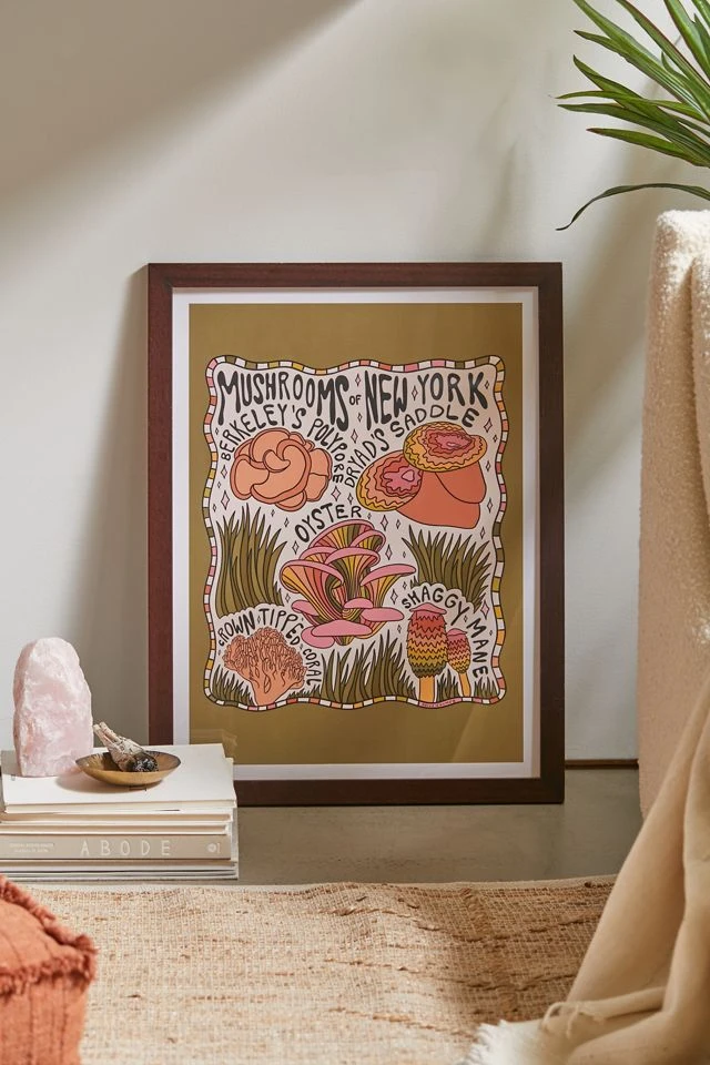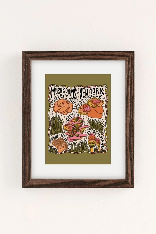 A visual catalog of mushrooms native to New York, this art print from Doodle By Meg captures a retro-cool aesthetic inspired ‘60s design and a foraging ethos. Printed on archival paper made from cotton pressed in Italian mills, this high-quality art print is available in sizes and frames just right for your space. First select your frame (or go frameless), then select your size.