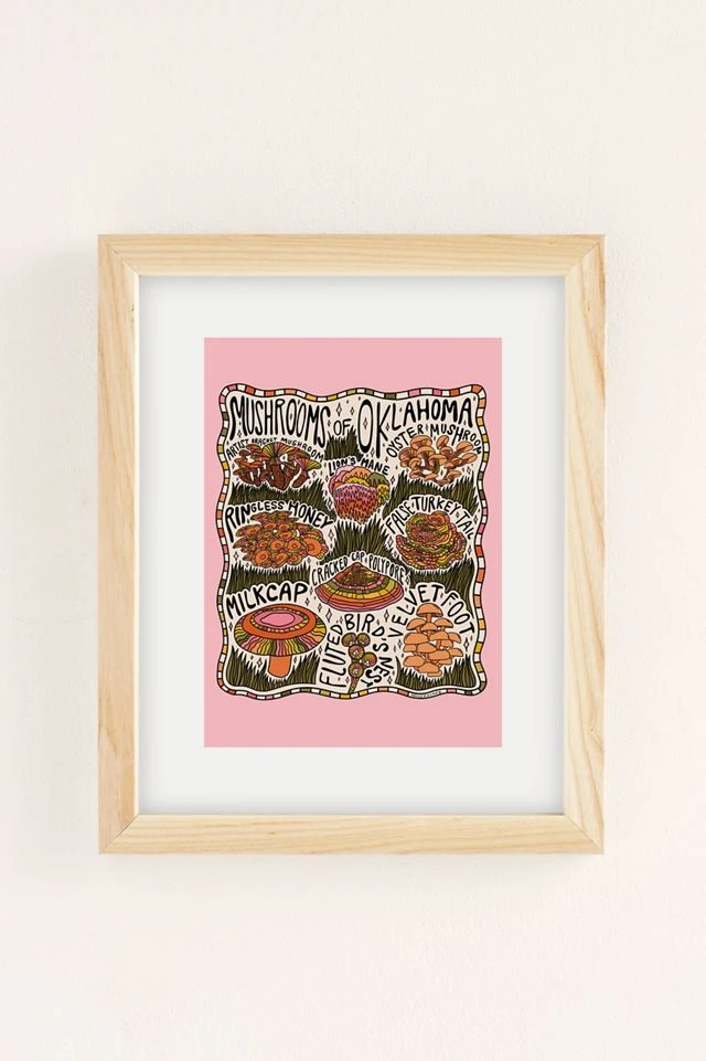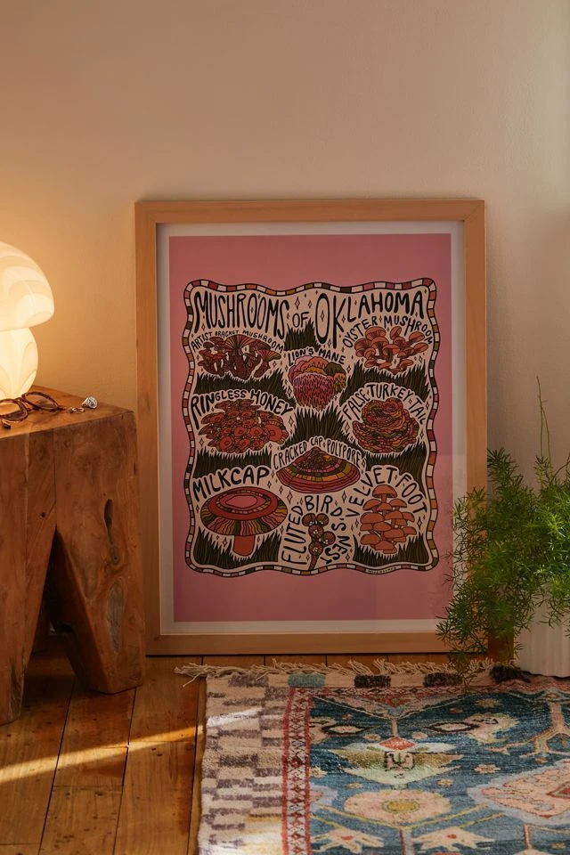 A visual catalog of mushrooms native to Oklahoma, this art print from Doodle By Meg captures a retro-cool aesthetic inspired ‘60s design and a foraging ethos. Printed on archival paper made from cotton pressed in Italian mills, this high-quality art print is available in sizes and frames just right for your space. First select your frame (or go frameless), then select your size.