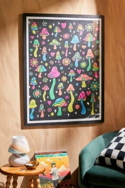 Trippy lil mushrooms are dotted across this Doodle By Meg art print in electric neon hues with a retro-cool, ‘60s-inspired aesthetic that brings a playful look to your space. Printed on archival paper made from cotton pressed in Italian mills, this high-quality art print is available in sizes and frames just right for your space. First select your frame (or go frameless), then select your size.