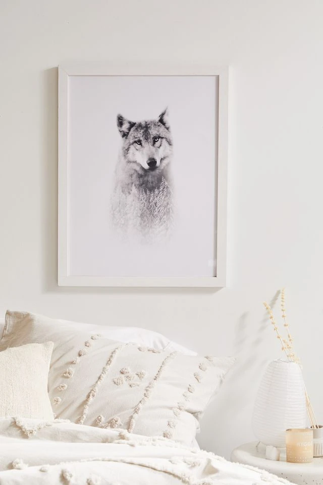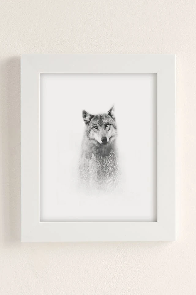 This wild, wintry art print by Emanuela Carratoni features a rugged wolf mingling with evergreens to give your space an adventures feel. Printed on archival paper made from cotton pressed in Italian mills, this high-quality art print is available in sizes and frames just right for your space. First select your frame (or go frameless), then select your size.