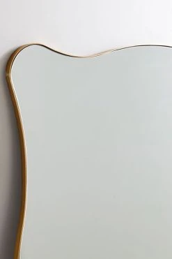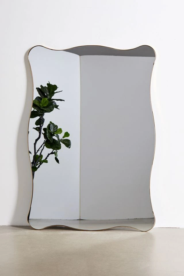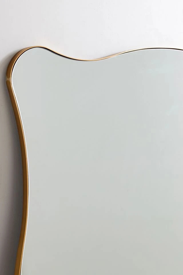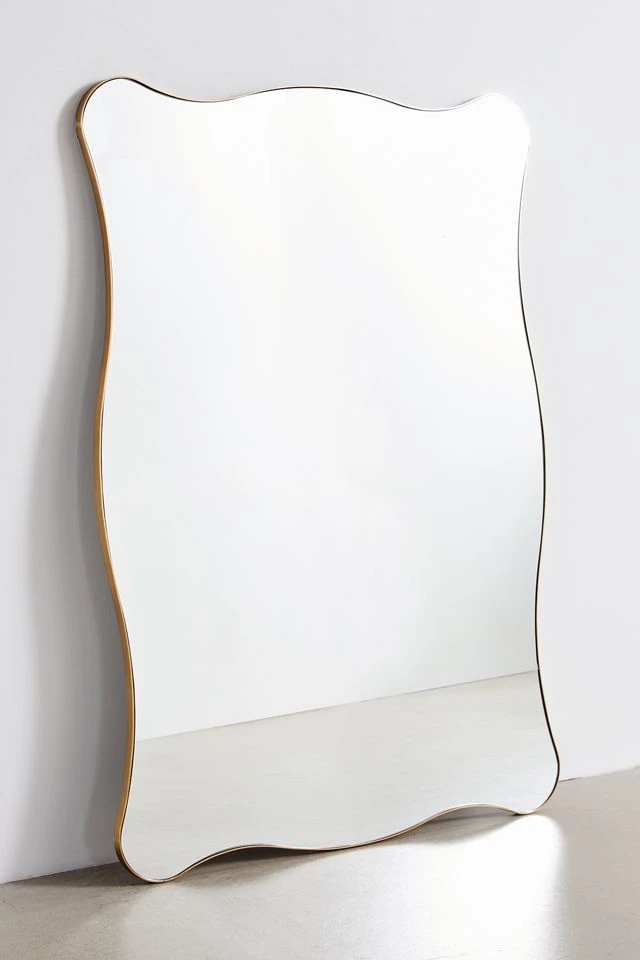 Top your space with a glam touch that gives you the perfect view of every look with this curvy floor mirror. Leans against the wall with a slim metal frame with wavy edges. This custom furniture piece will be made to order just for you. Exclusively available at Urban Outfitters.