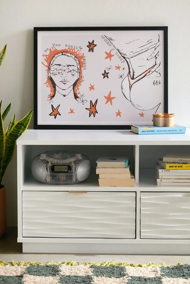 Art print by feemaleartist featuring illustrated stars, facial features and a curvy figure. Printed on archival paper made from cotton pressed in Italian mills, this high-quality art print is available in sizes and frames just right for your space. First select your frame (or go frameless), then select your size.
