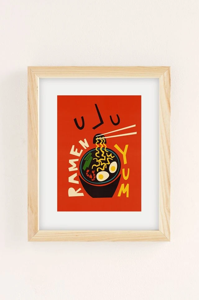Art print by Fox And Velvet featuring a character eating a bowl of ramen. Printed on archival paper made from cotton pressed in Italian mills, this high-quality art print is available in sizes and frames just right for your space. First select your frame (or go frameless), then select your size.