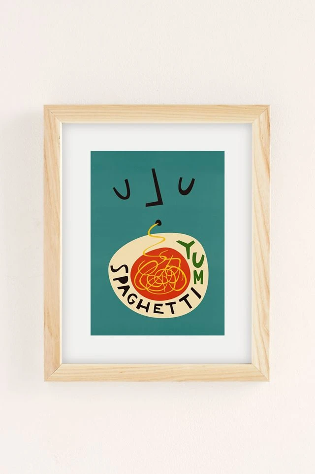 Art print by Fox And Velvet featuring a character eating a bowl of spaghetti. Printed on archival paper made from cotton pressed in Italian mills, this high-quality art print is available in sizes and frames just right for your space. First select your frame (or go frameless), then select your size.