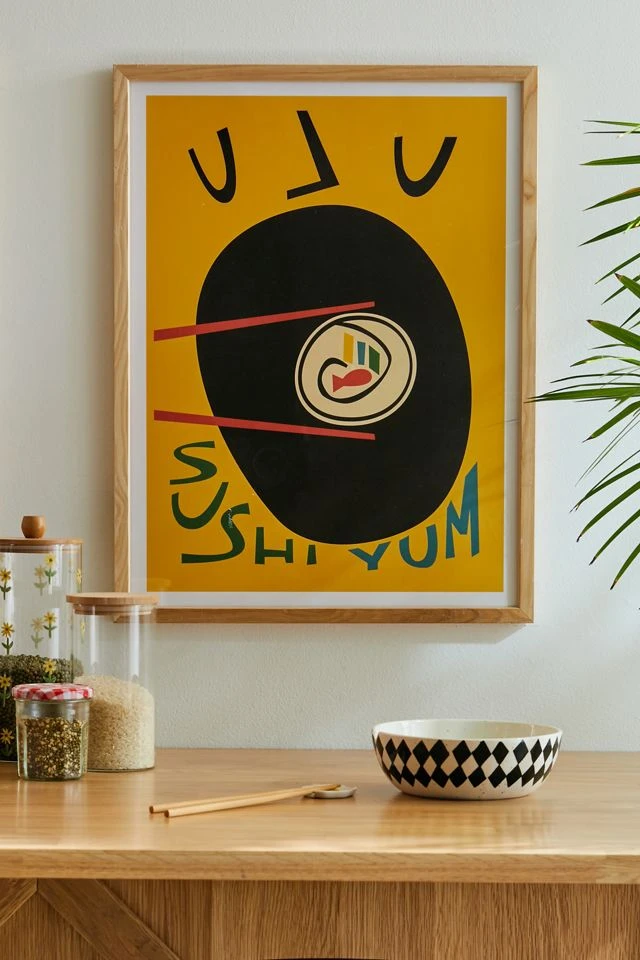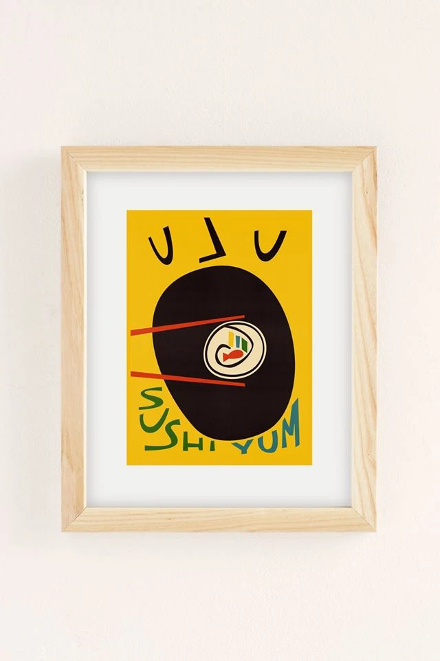 Art print by Fox And Velvet featuring a character eating a sushi roll. Printed on archival paper made from cotton pressed in Italian mills, this high-quality art print is available in sizes and frames just right for your space. First select your frame (or go frameless), then select your size.