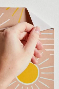Easily removable stick-on wallpaper in a sunny geometric print that lends a modern take on a beaming look. Cut in panels you can use to accent one wall or tile all over your room. Comes with one strip of wallpaper in an allover repeating pattern – choose from three different sizes to best suit your space.