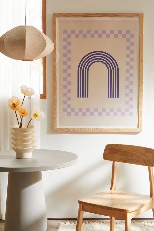 Decorate your wall space with this art print by Grace featuring a rainbow surrounded by a checkered border. Printed on archival paper made from cotton pressed in Italian mills, this high-quality art print is available in sizes and frames just right for your space. First select your frame (or go frameless), then select your size.