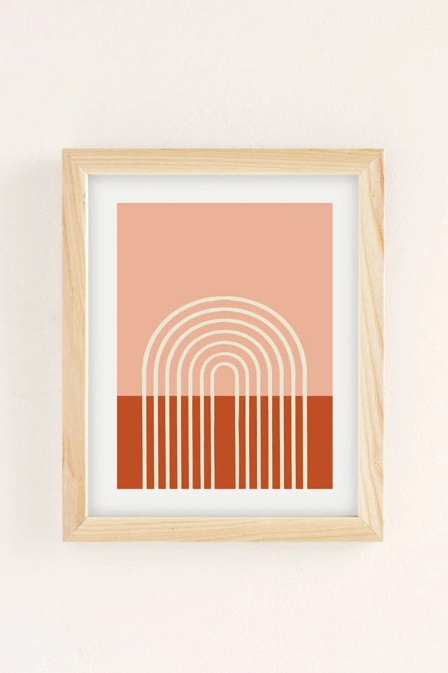 ‘70s-inspired art print by Grace featuring concentric arcs against a colorblocked background for a graphic effect. Printed on archival paper made from cotton pressed in Italian mills, this high-quality art print is available in sizes and frames just right for your space. First select your frame (or go frameless), then select your size.