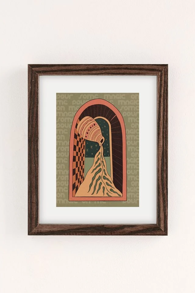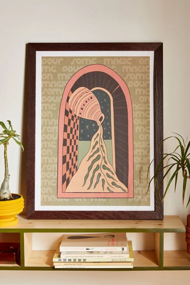 Art print by High Tied Creative featuring botanical leaves pouring from a vase. Printed on archival paper made from cotton pressed in Italian mills, this high-quality art print is available in sizes and frames just right for your space. First select your frame (or go frameless), then select your size.