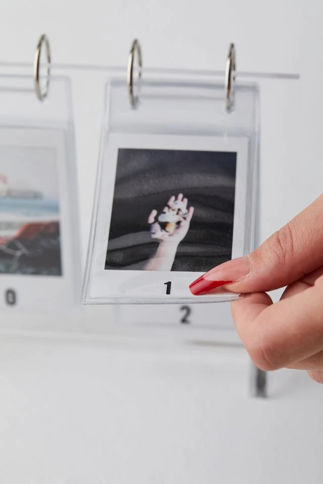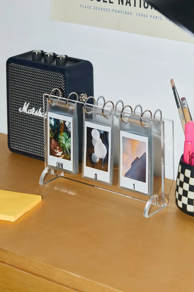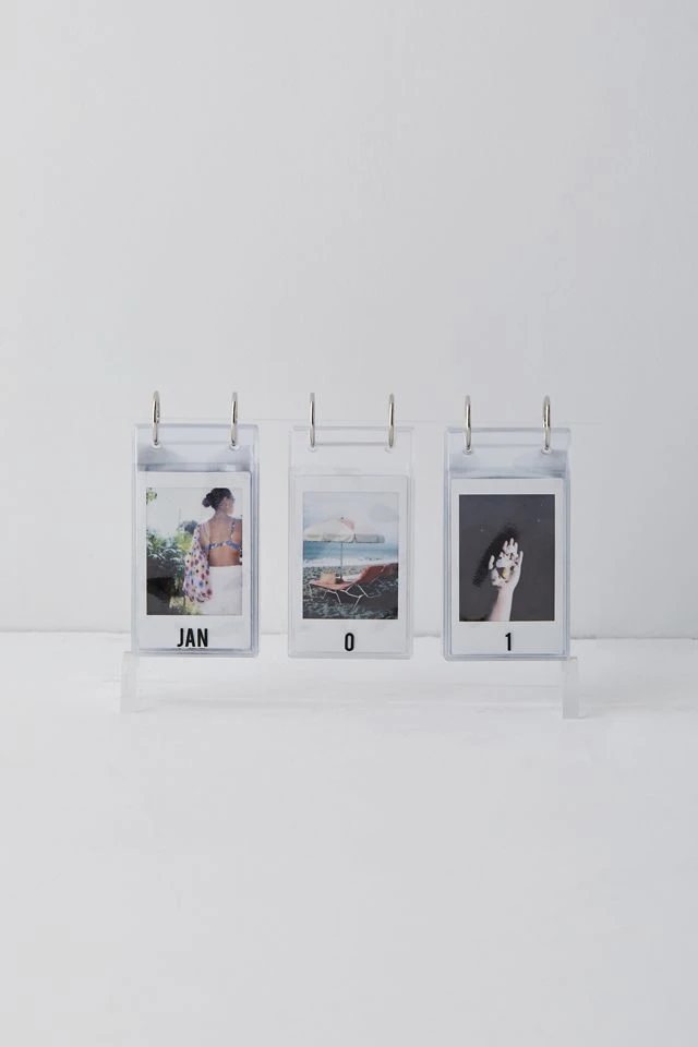 Add a personal touch to your desk accessories with this flip calendar. Featuring plastic film sleeves with months and dates printed at the base, add your favorite instant photos to the sleeves and flip them to the proper date. Available exclusively at Urban Outfitters.