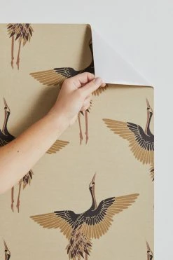 Easily removable stick-on wallpaper by Iveta Abolina featuring a repeating crane pattern allover. Cut in panels you can use to accent one wall or tile all over your room. Comes with one strip of wallpaper in an allover repeating pattern – choose from three different sizes to best suit your space.