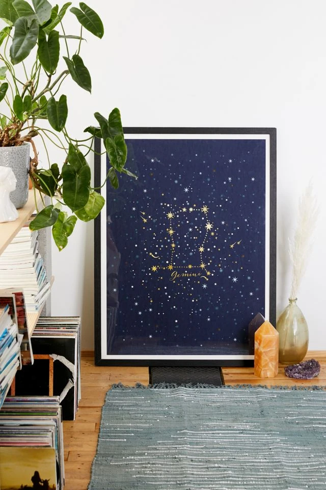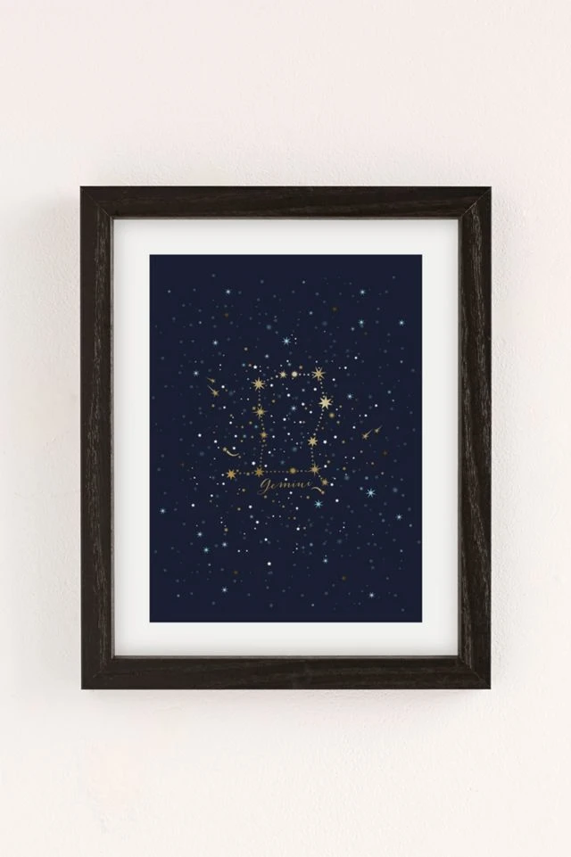 Embrace your dualities with this starry Gemini art print from Iveta Abolina. Printed on archival paper made from cotton pressed in Italian mills, this high-quality art print is available in sizes and frames just right for your space. First select your frame (or go frameless), then select your size.