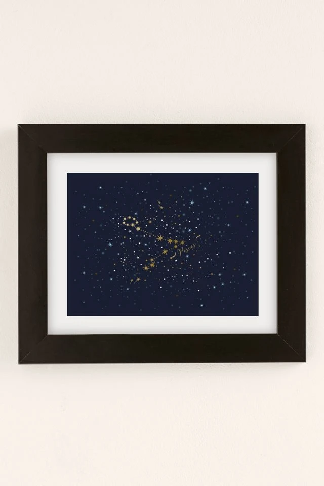 Celebrate Pisces season with this astrology-inspired constellation art print by Iveta Abolina. Printed on archival paper made from cotton pressed in Italian mills, this high-quality art print is available in sizes and frames just right for your space. First select your frame (or go frameless), then select your size.