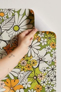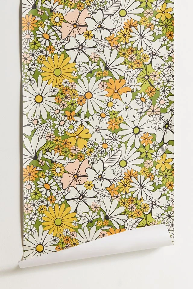Easily removable stick-on wallpaper in a retro-inspired floral print by Jenean Morrison, that imbues every moment with a touch of ‘70s retro-cool. Cut in panels you can use to accent one wall or tile all over your room, in a matte finish with vibrant, water-based, non-toxic inks. Comes with one strip of wallpaper in an allover repeating pattern – choose from three different sizes to best suit your space.