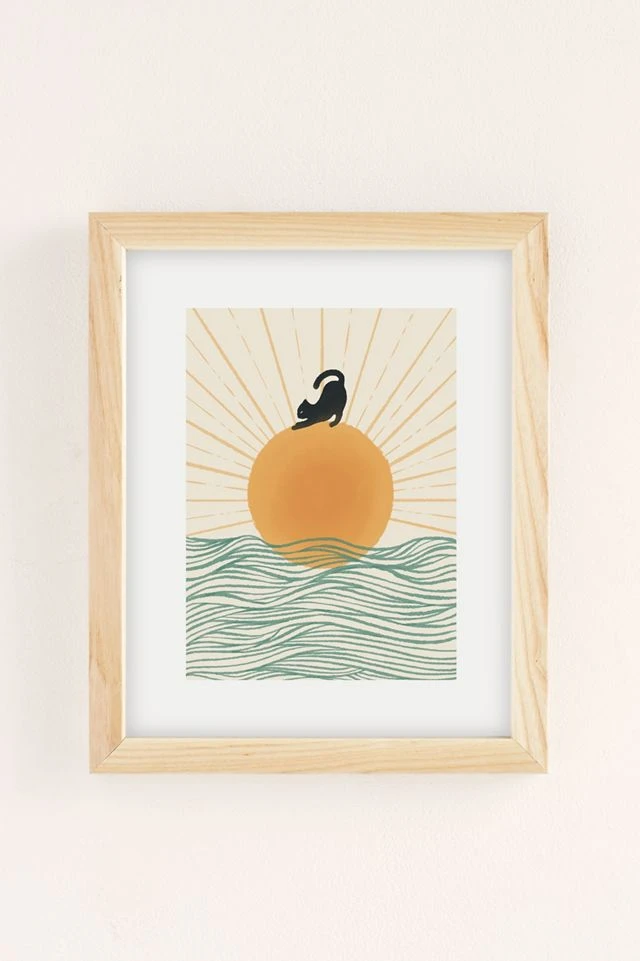 Art print by Jimmy Tan featuring a cat stretching on the sun. Printed on archival paper made from cotton pressed in Italian mills, this high-quality art print is available in sizes and frames just right for your space. First select your frame (or go frameless), then select your size.