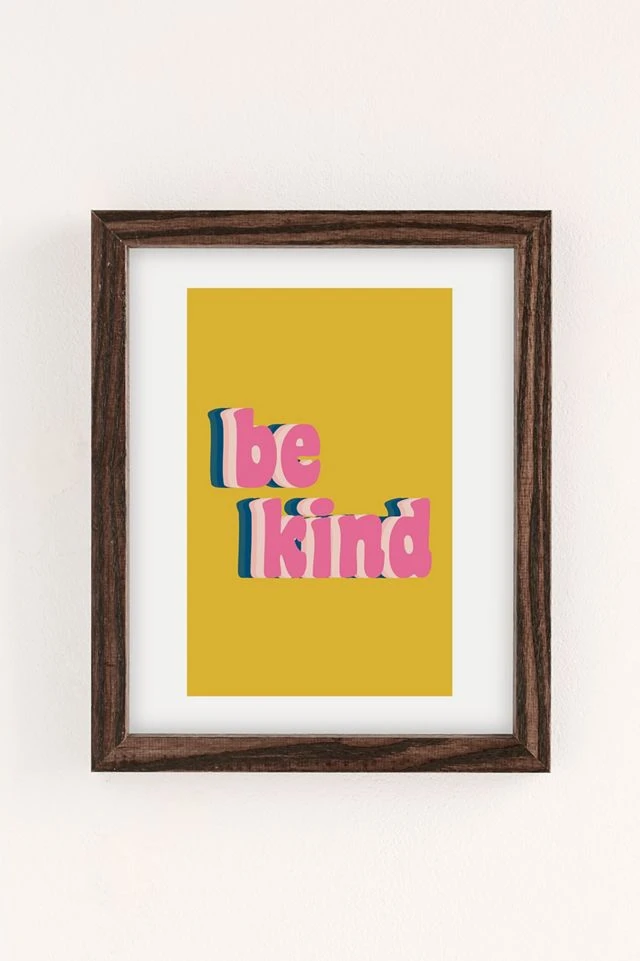 Make your space a place of kindness with this retro text art print by June Journal. Printed on archival paper made from cotton pressed in Italian mills, this high-quality art print is available in sizes and frames just right for your space. First select your frame (or go frameless), then select your size.