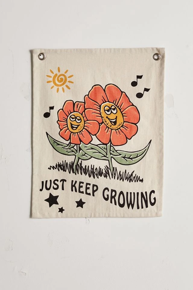 Remember that every step is growth with this small-scale tapestry, featuring a retro-sweet print with lettering. Made from a cotton canvas weave topped with grommets at the upper corners for easy hanging.