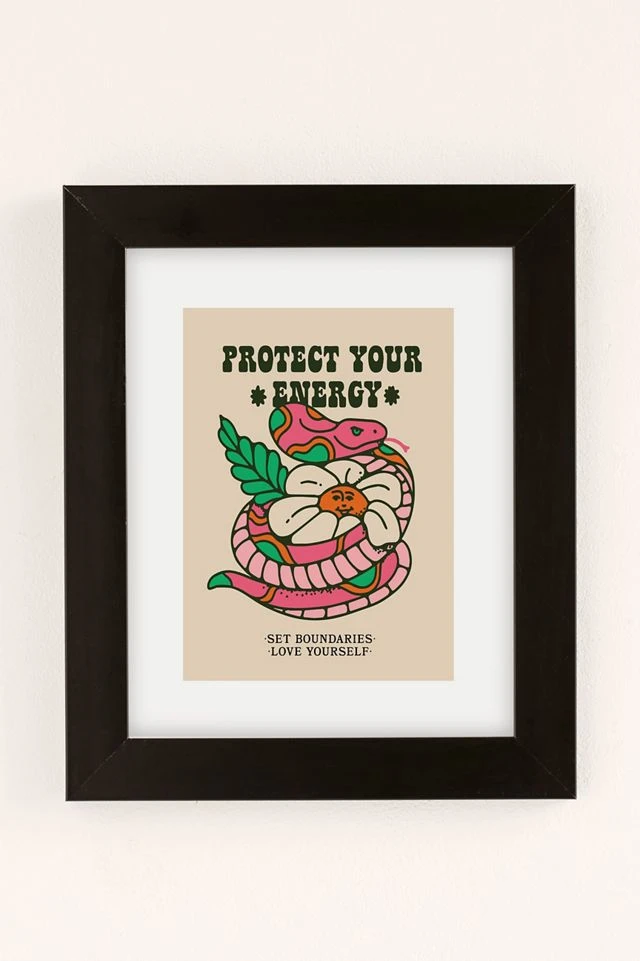 Protect your energy with this art print by Kira Cyan featuring a colorful snake motif. Printed on archival paper made from cotton pressed in Italian mills, this high-quality art print is available in sizes and frames just right for your space. First select your frame (or go frameless), then select your size.