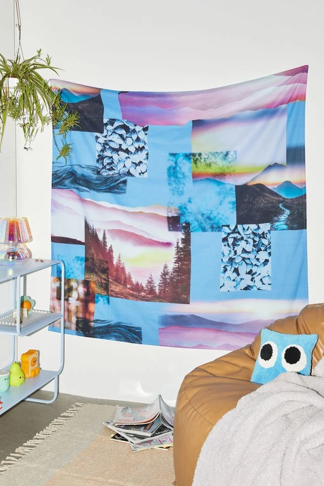 Channel nostalgic feels when you display this oversized tapestry featuring stunning nature-inspired photographs scattered across the top. Available exclusively at Urban Outfitters.