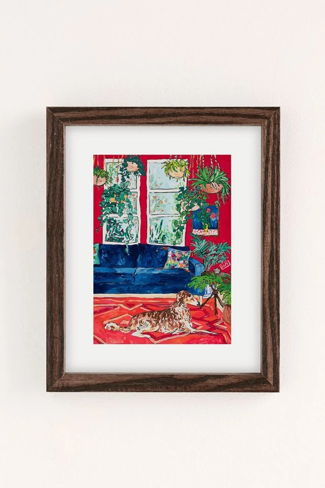 Add a vibrant touch to your space with this art print by Lara Lee Meintjes featuring leafy plants and a lounging dog. Printed on archival paper made from cotton pressed in Italian mills, this high-quality art print is available in sizes and frames just right for your space. First select your frame (or go frameless), then select your size.