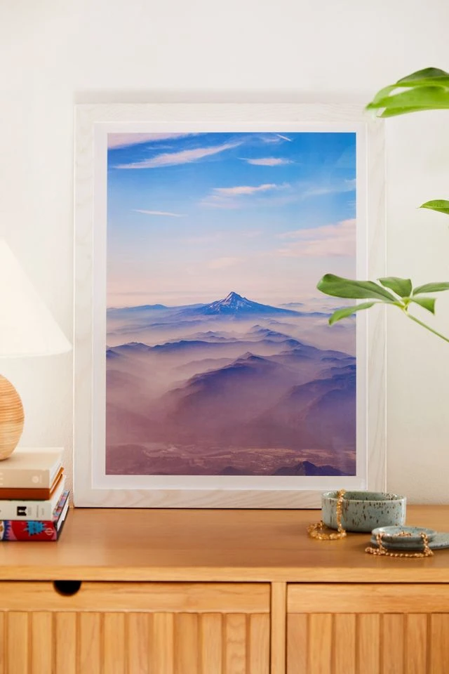 Art print by Laura Murray featuring a cool-hued mountainscape. Printed on archival paper made from cotton pressed in Italian mills, this high-quality art print is available in sizes and frames just right for your space. First select your frame (or go frameless), then select your size.
