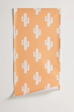 Easily removable stick-on wallpaper in a minimalist repeating cactus print by Lyman Creative Co. that lends a fresh take to a desert-dwelling motif. Cut in panels you can use to accent one wall or tile all over your room, in a matte finish with vibrant, water-based, non-toxic inks. Comes with one strip of wallpaper in an allover repeating pattern – choose from three different sizes to best suit your space.