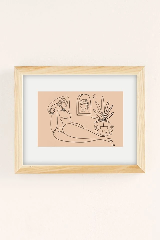 Lilting linework scene captured by Maggie Stephenson in this intimate art print. Printed on archival paper made from cotton pressed in Italian mills, this high-quality art print is available in sizes and frames just right for your space. First select your frame (or go frameless), then select your size.