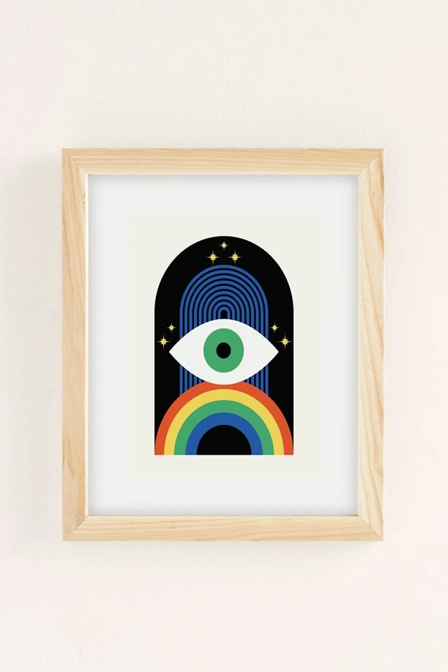 Art print from Magic Society featuring a mystical eye sitting on top of a rainbow. Printed on archival paper made from cotton pressed in Italian mills, this high-quality art print is available in sizes and frames just right for your space. First select your frame (or go frameless), then select your size.