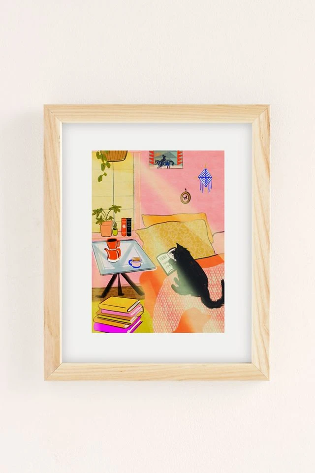 Enjoy a cup of coffee and a good book alongside this purr-fect art print by Mala Hora. Printed on archival paper made from cotton pressed in Italian mills, this high-quality art print is available in sizes and frames just right for your space. First select your frame (or go frameless), then select your size.