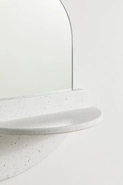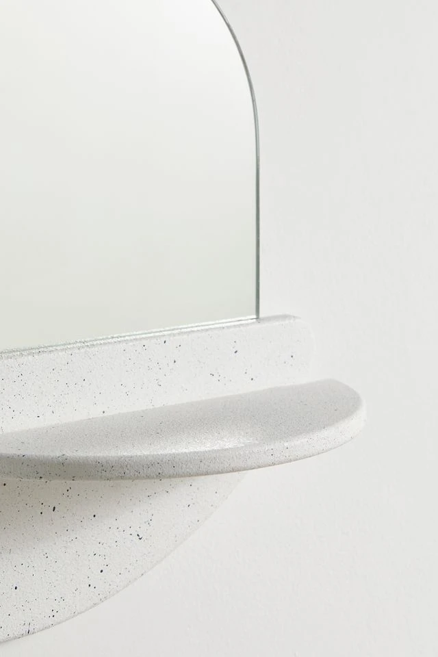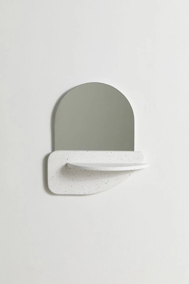 Create a chic getting-ready space with this wall-mounted vanity featuring an arc-shaped mirror with a small circular shelf that’s perfect for holding your makeup, accessories and more. Mounts to wall. Hand-painted, the shelf you receive may vary slightly from what’s pictured. Available exclusively at Urban Outfitters.