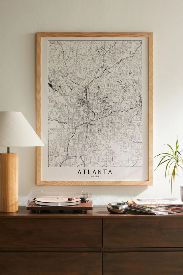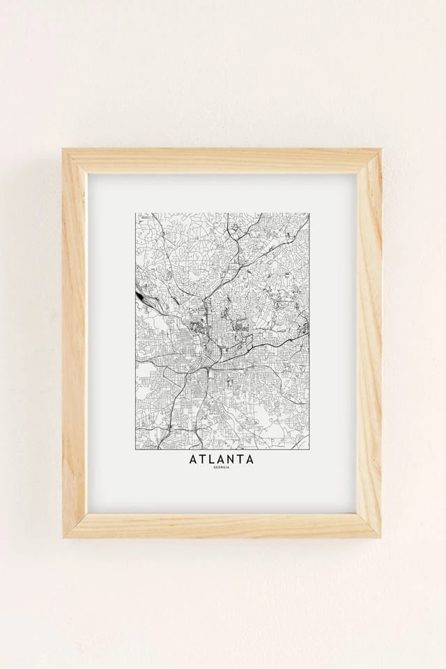 Create a modern minimalist mood in your space with this art print from multipliCITY featuring a black and white map of the city of Atlanta. Printed on archival paper made from cotton pressed in Italian mills, this high-quality art print is available in sizes and frames just right for your space. First select your frame (or go frameless), then select your size.