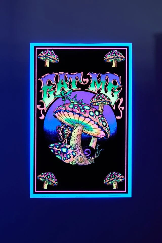 Embellish your space with this blacklight psychedelic mushroom poster.