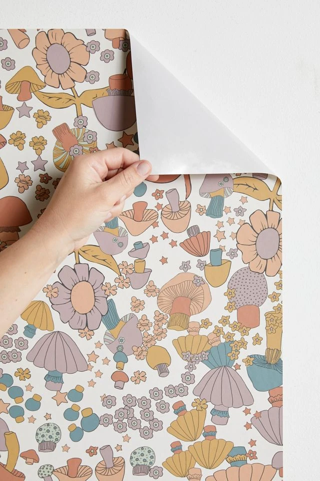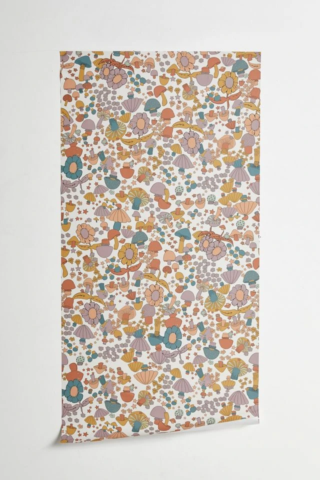 Easily removable stick-on wallpaper in a whimsical mushroom motif. Cut in panels you can use to accent one wall or tile all over your room. Comes with one strip of wallpaper in an allover repeating pattern – choose from three different sizes to best suit your space. Available exclusively at Urban Outfitters.