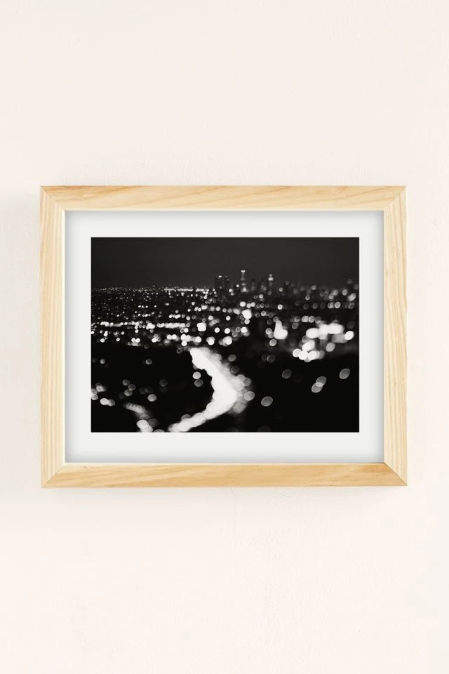 Shot overlooking Los Angeles from a distance, artist Myan Soffia captures the seductive nature of the entrancing city by blurring the twinkling lights into shimmering bokeh. An East Coast native living in LA, Myan Soffia is a visual artist + self-taught photographer inspired by her city. Printed on archival paper made from cotton pressed in Italian mills, this high-quality art print is available in sizes and frames just right for your space. First select your frame (or go frameless), then select your size.