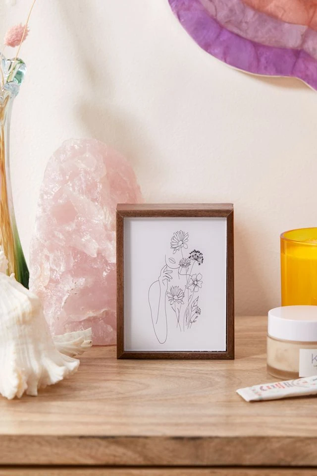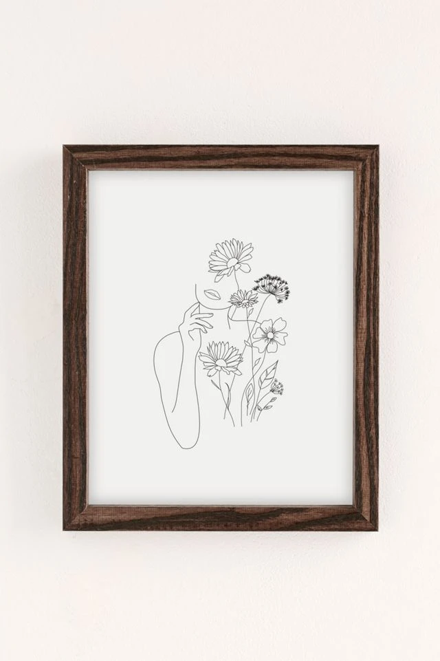 Intimate linework rendering of a female form with a lush floral bouquet, illustrated by Nadja. Printed on archival paper made from cotton pressed in Italian mills, this high-quality art print is available in sizes and frames just right for your space. First select your frame (or go frameless), then select your size.