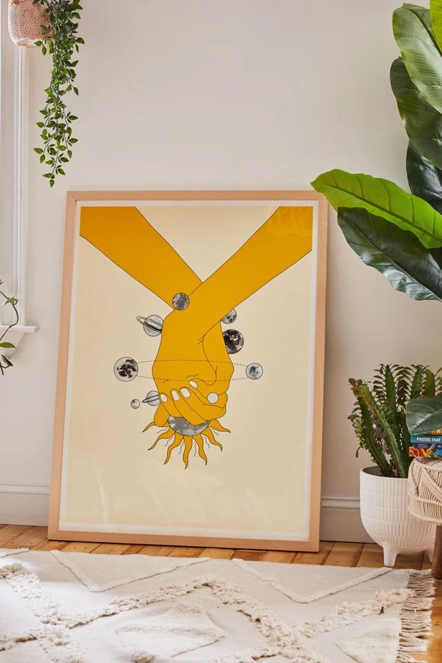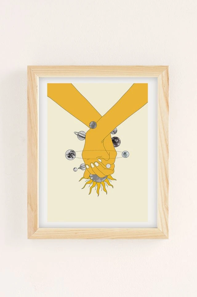 UO-exclusive art print by Nadja depicting hands clasped in the midst of the galaxy’s gravitational pull. Printed on archival paper made from cotton pressed in Italian mills, this high-quality art print is available in sizes and frames just right for your space. First select your frame (or go frameless), then select your size.