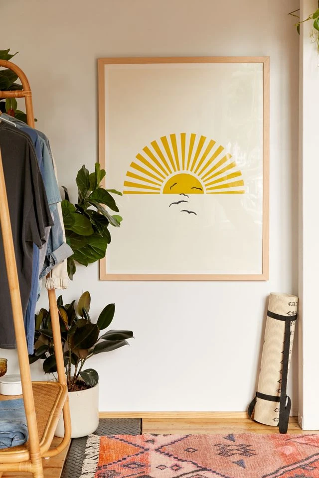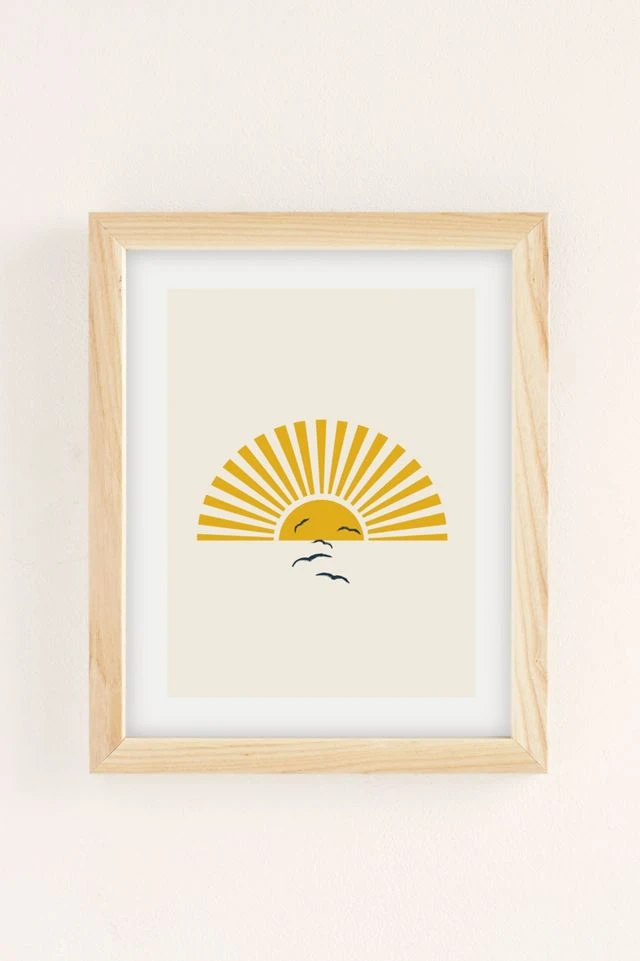 Minimalist sunbeam art print by Nadja, inspired by a ‘70s aesthetic and dreamy horizons. Printed on archival paper made from cotton pressed in Italian mills, this high-quality art print is available in sizes and frames just right for your space. First select your frame (or go frameless), then select your size.